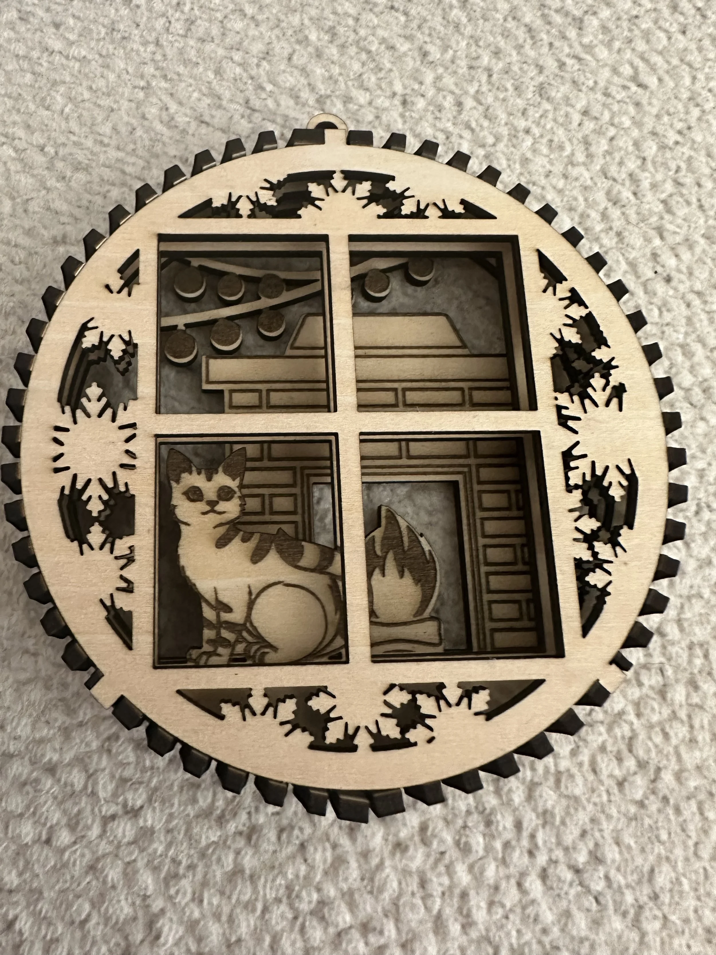 Cat Christmas Ornament – Laser Cut Wood Fireplace Scene – Rustic Holiday Decor for Cat Lovers – Handmade Christmas Gift