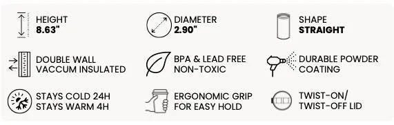 Sip in style with our 20 oz Custom Engraved Skinny Tumblers – the perfect blend of function and personalization! Made with durable powder-coated stainless steel, these tumblers are designed to keep drinks cold for up to 24 hours and hot for up to 4 hours thanks to their double-wall vacuum insulation.