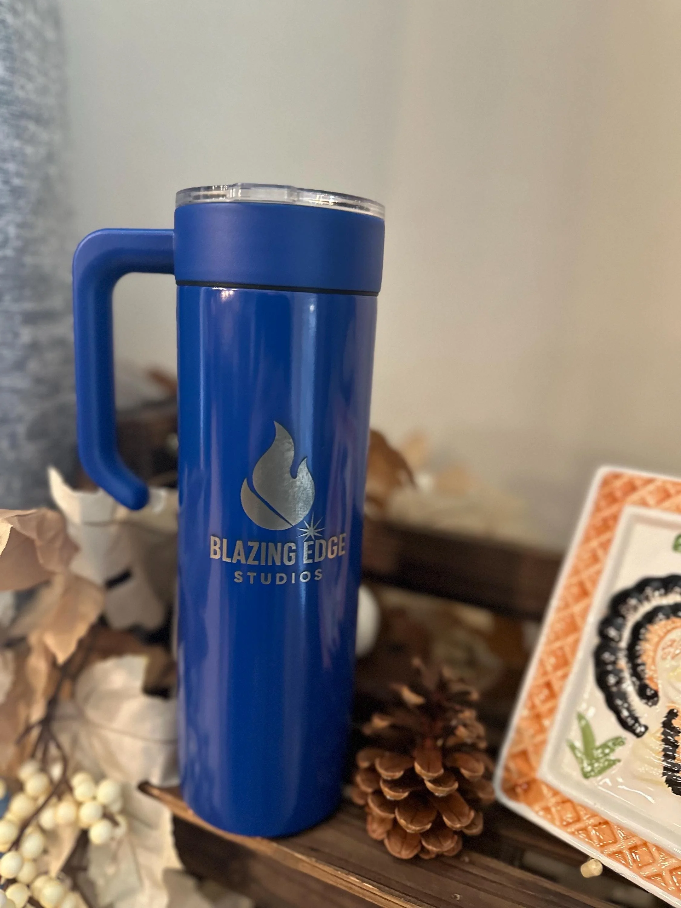 Custom Engraved 20 oz Tumbler with Handle: Personalized Stainless Steel Cup