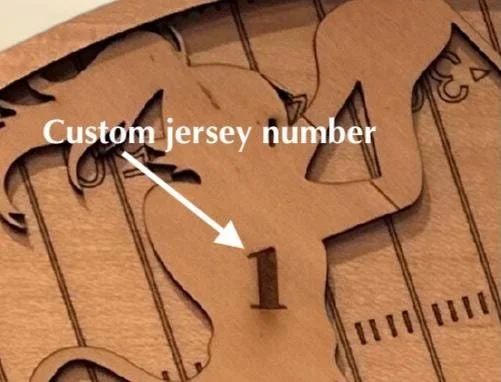 Celebrate your team’s hard work and victories with this personalized flag football award, crafted from quality wood and precision laser-cut for a standout display. Perfect for athletes, coaches, or schools, this unique trophy combines a football field design with a silhouette player in action.